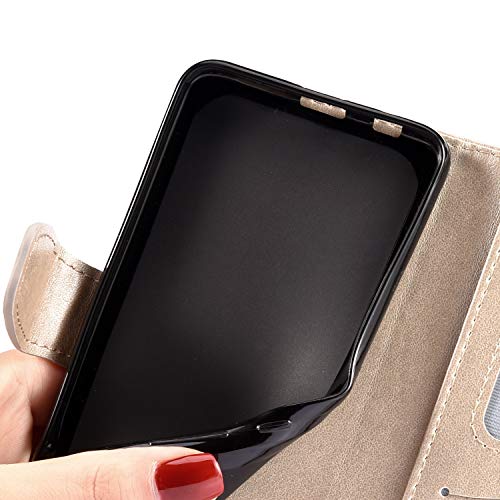 Uposao Compatibile con Samsung Galaxy A40 Custodia,Brillantini Portafoglio - Bling Glitter Cover in Pelle Colorata Cuore Farfalla 3D Disegno Libro Antiurto Supporto Copertura Case,Oro