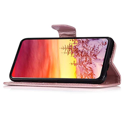 Uposao Compatibile con Samsung Galaxy A70 Custodia,Brillantini Portafoglio - Bling Glitter Strass Cover in Pelle Colorata Cuore 3D Disegno Libro Antiurto Supporto Copertura Case,Oro Rosa