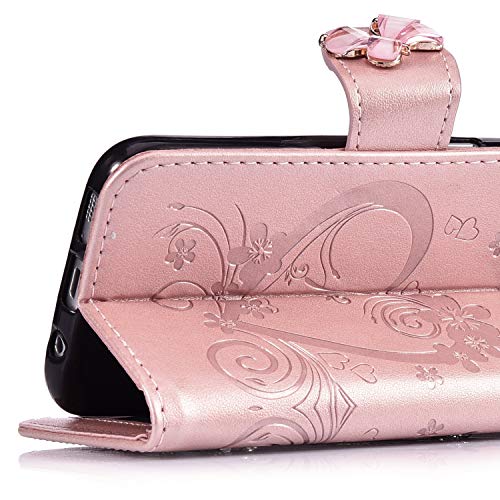 Uposao Compatibile con Samsung Galaxy A40 Custodia,Brillantini Portafoglio - Bling Glitter Strass Cover in Pelle Colorata Cuore Farfalla 3D Disegno Libro Antiurto Supporto Copertura Case,Oro Rosa