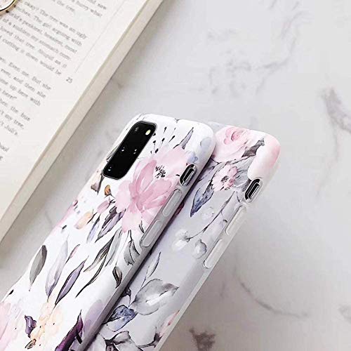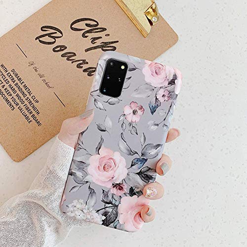 Uposao Compatibile con Samsung Galaxy S20 Plus Trasparente e Modellato Soft IMD Piante Tropicali Vintage Foglie Verdi Cover Posteriore Custodie,Fiori Grigi
