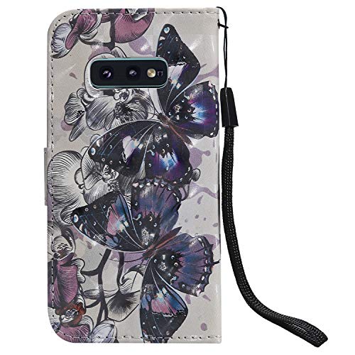 Uposao Compatibile con Samsung Galaxy S10e Custodia Portafoglio Protettivo per Cellulare Custodia Bookstyle 3D Dipinto Design per Telefono Cover in Pelle Borsa Pieghevole per Libro,Farfalla Nero