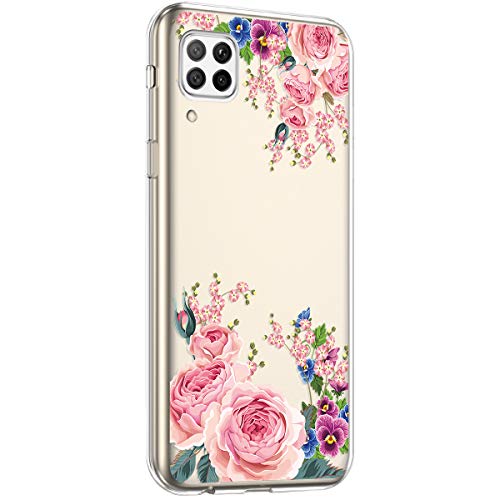Uposao Cover Compatibile con Huawei P40 Lite Trasparente con Disegni Slim Morbida Silicone Sottile TPU Primaverile Flessibile AntiScivolo Fiore Animal Backcover Custodia,Rose