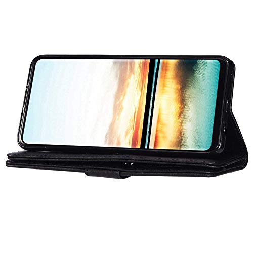 Uposao Cover Compatibile con Samsung Galaxy A71 Brillantini Glitter Custodia in Pelle PU Slim Libro Portafoglio Flip Chiusura Magnetica Cover con 9 Porta Carte,Protettiva Antiurto Stand Cover,Nero