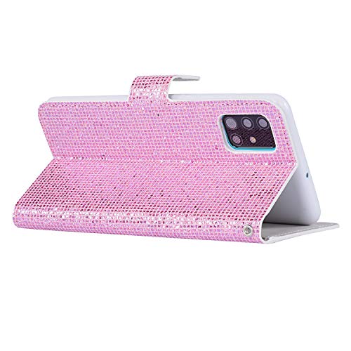 Uposao Cover Compatibile con Samsung Galaxy A51 Custodia Glitter Sparkle Bling Libro Pelle Case Portafoglio Magnetica Chiusura Supporto di Stand Protettiva Cover,Rosa