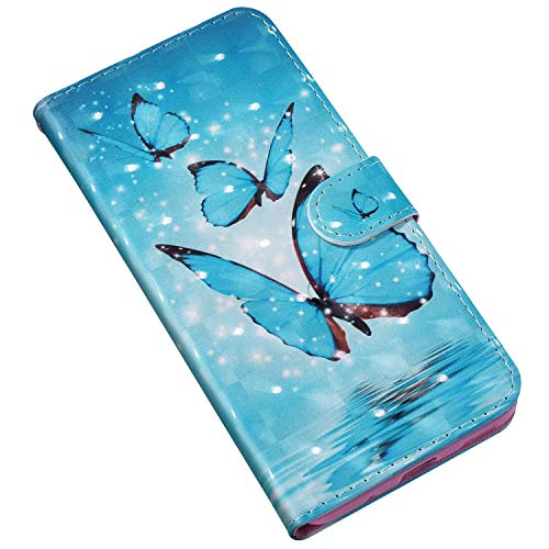 Uposao Cover Compatibile con Samsung Galaxy A41 Custodia 3D Dipinto Bling Shiny Magnetico Libro Flip in Pelle PU Cuoio Case Funzione di Appoggio e Supporto Cover,Farfalle Blu