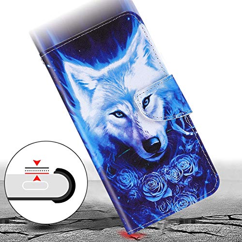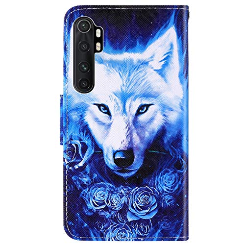 Uposao Cover Compatibile con Xiaomi Note 10 Lite Custodia 3D Modello Colorato Custodia in Pelle Cover Protettiva Flip Portafoglio Custodia a Libro Scomparti per Carte Cover,Lupo Blu