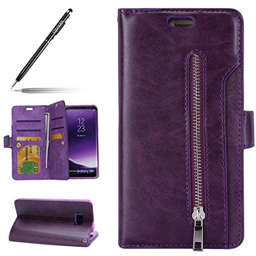 Uposao Cover Galaxy S8 Plus Custodia Pelle, Retro Cover Premium PU Leather con Cerniera Protettiva Flip Case in Pelle Portafoglio Libro Custodia per Samsung Galaxy S8 Plus-(porpora)