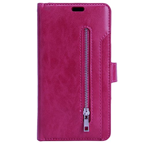Uposao Cover Galaxy S8 Plus Custodia Pelle, Retro Cover Premium PU Leather con Cerniera Protettiva Flip Case in Pelle Portafoglio Libro Custodia per Samsung Galaxy S8 Plus-(rosa rossa)