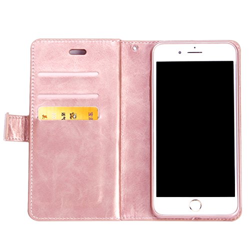 Uposao Cover iPhone 7 Plus,Custodia iPhone 8 Plus,iPhone 7/8 Plus Custodia Cover Pelle, PU Leather con Cerniera Protettiva Flip Case in Pelle Portafoglio Libro Custodia per iPhone 7/8 Plus-(rosso)