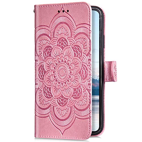 Uposao Custodia Compatibile con Samsung Galaxy A6 Plus 2018,Bookstyle Portafoglio Flip Cover con Chiusura Magnetica,Sopporto Pieghevole e Tasche Interne per Carte di Credito o d'identita-Oro Rosa