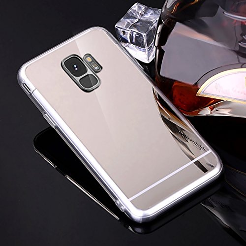 Uposao Custodia per Galaxy S9 Glitter, Placcatura Specchio Bling Glitter Cristallo di Scintillio Ultra Sottile Morbido Silicone Gel Clear TPU Cover per Samsung Galaxy S9-(Silver)