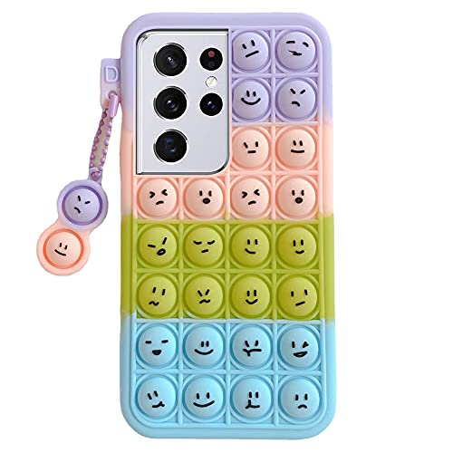 Uposao Custodia protettiva per Samsung Galaxy S21 Ultra Cute Cartoon Orso Morbido Silicone Cover Fidget Toys Pop Bubble Fidget Reliver Giocattolo antistress Bubble Phone Case antiurto