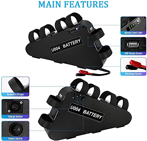 【Parametro】 Questa batteria triangolare Ebike è 48V 20AH, adatta al motore 1000W/750W/500W (50W-1000W). Corrente di scarica massima costante: 30A. Dimensioni: 14.4x 9.3x 15.6in &T3.2in. Caricatore: 54.6V 3A. Scarico: Anderson (lato maschile e femminile)