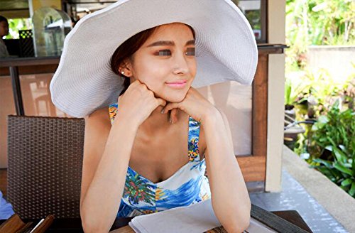 Upstore, 1 Cappello da Sole da Donna e Ragazza, Colore Puro, Pieghevole, a Tesa Larga, Elegante, con Fiocco, Stile Bohémien, Estivo, Spiaggia, Paglia UPF 50+, Infradito Colorati Estivi,