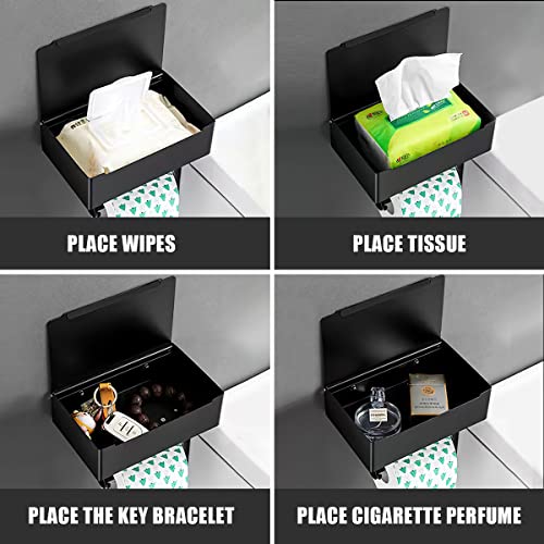 【Grande capacità】: il porta carta igienica nero ha un ampio vano portaoggetti (20,5 x 13 x 6,5 cm) con spazio sufficiente per riporre salviette di marca diversa o altri articoli da bagno . Questo è un posto perfetto per riporre gli articoli per l'igiene femminile. Inoltre, la rientranza sulla cover superiore protegge meglio il cellulare o altri oggetti dalla caduta.