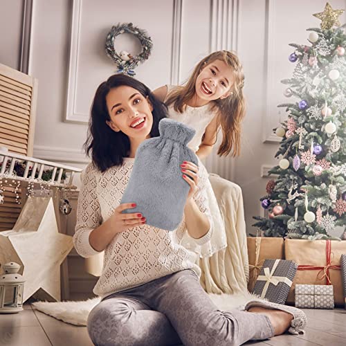 UQTUKO Borsa Acqua Calda, 2L Borsa dell'acqua Calda con Peluche Bottiglia di Acqua Calda in Gomma boule acqua calda con copertura morbida Hot Water Bottle per Mano Piede Caldo, Grigio