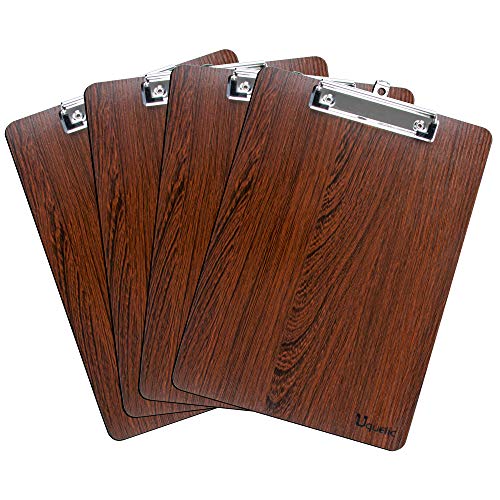 Uquelic 4 Pcs Legno Portablocco Clipboard A5 Cartella Porta Menu Clip A5 con Clip Robusta e Foro per Appendere