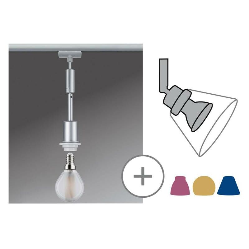 URail DecoSystems pendolo -. Matt cromo max 1x20W E14 senza lampadine Spots e sospeso nello stesso design I URail DecoSystems pendolo opaco cromo con un cavo tessuto fornisce piena flessibilità nella scelta del paralume e la lampada. Può essere equipaggiato con qualsiasi schermo DecoSystems ea lampade E14 sono montati. In questo modo, le luci ottenere un tocco personale. In combinazione con altre luci della gamma URail così un sistema individuale ferroviario luce del sistema URail può essere fino a una capacità totale di max. 1000 watt creano incl.. Istruzioni per l'installazione tecnologia LED risparmiare fino al 80% di potenza rispetto ad incandescenza lampade cavo con tessuto spalmato lampade liberamente selezionabili Do non dimenticare di ordinare le lampade abbinabili uguale Specifiche: dimensioni in mm: diametro: 44 peso in grammi: 249 tipo di lampadina / versione: E14 massima Potenza: max 20 dimmerabile: la luce è oscurata, l'oscuramento dipende dal tipo di lampade utilizzate