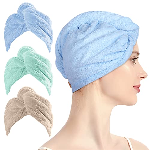URAQT Asciugamano Microfibra Capelli, 3 Pezzi Asciugamano Capelli Turbante con Bottone, Morbido Assorbente e Asciugatura Rapida, Turbante Super Assorbente per Capelli Corti e Lunghi(Tinta Unita)