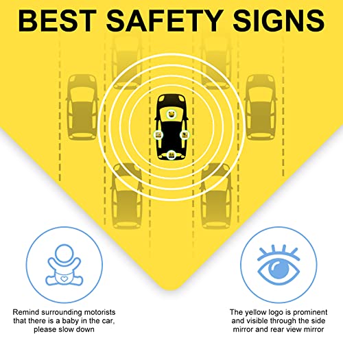 【Giallo accattivante】 L'adesivo del segnale di sicurezza per bambini è progettato in giallo brillante, che può essere visto chiaramente sotto l'illuminazione delle luci notturne, e il motivo e il carattere di grandi dimensioni sono molto facili da attirare l'attenzione degli altri conducenti e far loro sapere lì è un passeggino in macchina, ricorda loro di mantenere una distanza di sicurezza dalla tua auto.