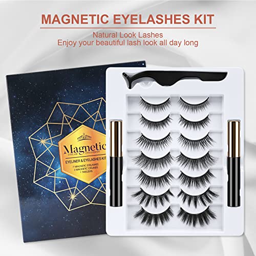 URAQT Ciglia Finte Magnetiche e Eyeliner Magnetico Kit, 7 Paia Ciglia Magnetiche Impermeabile Naturali, Set di Ciglia Finte Riutilizzabili di Effetto 3D