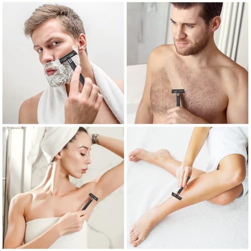 【Elegante Rasoio di Sicurezza a Doppio Taglio】 I rasoi a doppio taglio offrono la migliore esperienza di rasatura sollevando e rimuovendo i follicoli piliferi nel modo più vicino e pulito. Il rasoio in metallo è dotato di un'esclusiva impugnatura strutturata che offre una presa sicura e confortevole, consentendoti di raderti con un controllo eccezionale e una precisione perfetta.