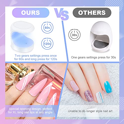 【Impostazioni di fasatura a 2 marce】: La lampada per unghie a led ha funzioni di temporizzazione anni 60 e 120. Facile da usare, toccare il pulsante dell'interruttore, la luce è accesa per 60 secondi, premere a lungo l'interruttore, la luce è accesa per 120 secondi. Con design anti-mistouch. Perfetto per l'uso con un dito, aiuta lo smalto ad asciugarsi in modo uniforme sia che tu abbia unghie lunghe o corte