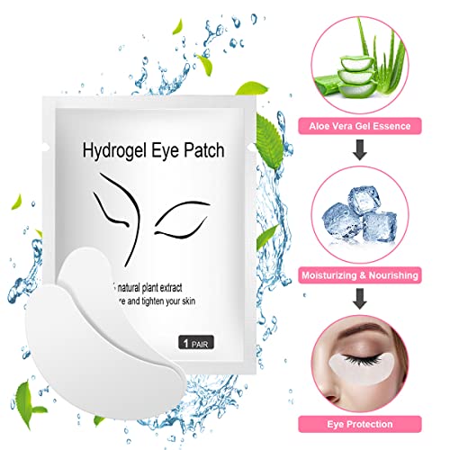 URAQT Patch Occhi Extension, 50 Paia Occhi da Ciglia Finte Eye Gel Patches Eye Pads con 10 Scovolino Ciglia, Patch Occhi Trucco Patch Ciglia per Extension Ciglia e Pro Salon Eye Mask Beauty Tool