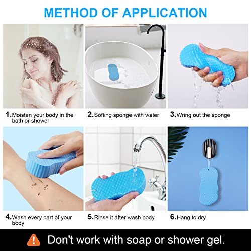 【Facile da usare】 Basta immergere in acqua per un po', non c'è bisogno di usare il sapone, immergere il corpo in acqua con una spugna per rimuovere lo sporco dalla pelle. Per una pulizia più accurata, strofina il corpo con una spugna da bagno, quindi strofina con un bagnoschiuma. La spugna può essere utilizzata più volte. Ammorbidisce se immerso in acqu
