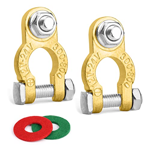 【Materiale di alta qualità】: I morsetti del connettore della batteria del terminale sono realizzati in materiale di ottone di alta qualità, che ha una buona conduttività elettrica e resistenza alla corrosione, non è facile da arrugginire e ha una lunga durata. Facile da cablare, ha una buona conduttività elettrica per ridurre la distorsione di tensione.