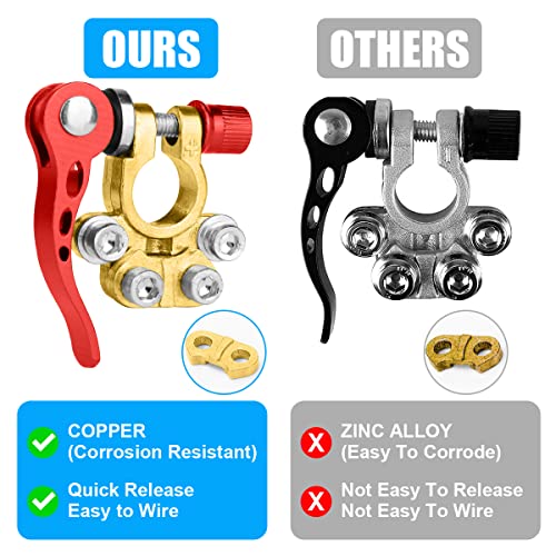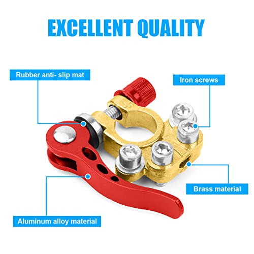 URAQT Terminali di Batteria, Terminali Morsetti di Batteria 12V 24V, Morsetto Positivo e Negativo Connettori di Batteria A Sgancio Rapido Ottone Tipo SAE/JIS A per Auto Barca Moto Camion