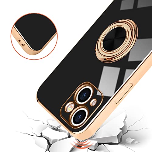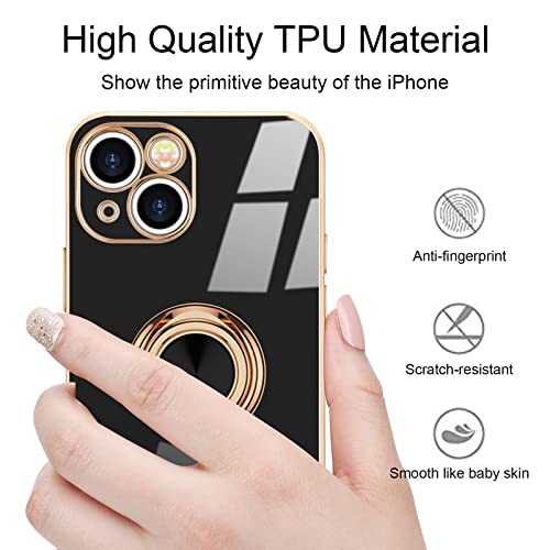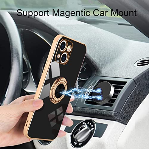 Urarssa Cover Compatibile con iPhone 13 Custodia Ultra Sottile Morbida TPU Silicone Custodia con 360° Regolabile Anello Magnetica Supporto Ring Cover per iPhone 13 Nero