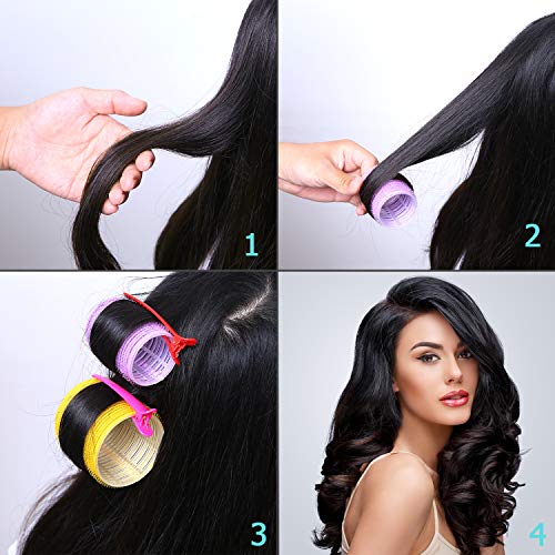 Rulli autoaderenti di 2 misure: i 2 tipi di bigodini misurano 44 mm e 64 mm di diametro, con la stessa lunghezza di 63 mm, sono anche in 2 colori, giallo e viola chiaro, adatti per diverse lunghezze di capelli per creare diversi stili di capelli.