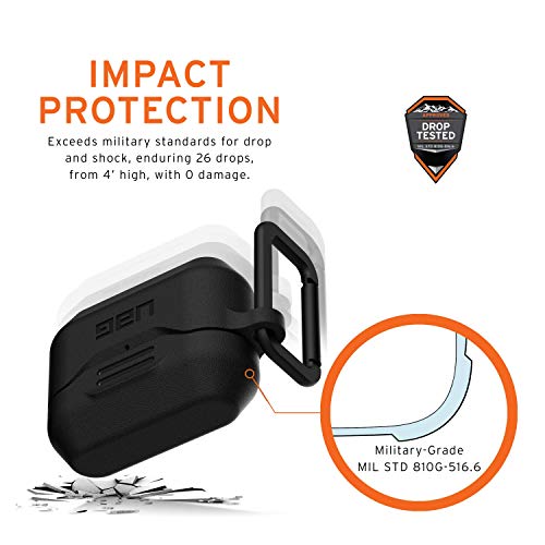 Urban Armor Gear Custodia Protettiva Apple AirPods Pro (Cover silicone strutturato monoblocco, Ricarica senza fili compatibile, Moschettone, Lightning Coperchio) nero