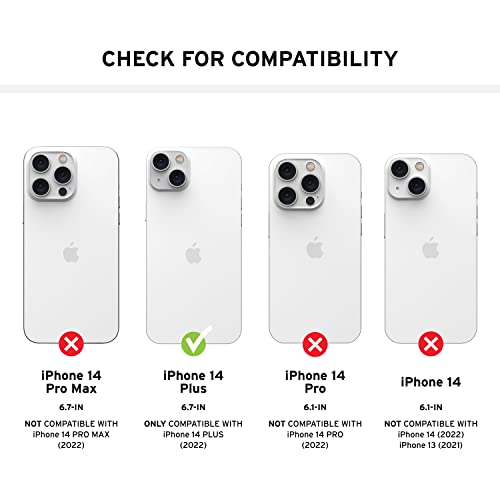 La custodia protettiva è stata sviluppata esattamente per le dimensioni del nuovo iPhone 14 Plus - le aperture per la fotocamera e le porte, così come le coperture dei pulsanti ingrandite e facili da raggiungere, assicurano un utilizzo semplice e una funzionalità completa