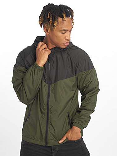 Urban Classics 2-Tone Tech Windrunner Giacca, Multicolore (Black/DarkOlive 01338), 3XL Uomo