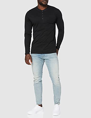 Urban Classics Basic Henley L/S Tee Felpa, Nero (Black 7), L Uomo