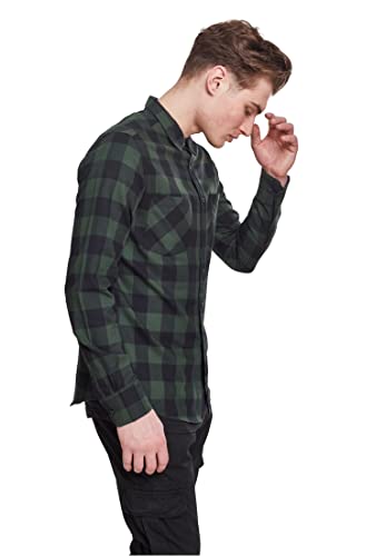 URBAN CLASSICS Camicia in Flanella a Maniche Lunghe da Uomo, Camicia Casual Lunga con Bottoni per Uomo, Vestibilità Regolare, Cotone Flanella, Colore: Nero/Verde, Taglia: XL