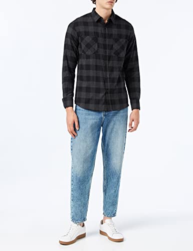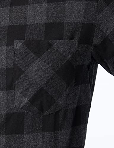 URBAN CLASSICS Camicia in Flanella a Maniche Lunghe da Uomo, Camicia Casual Lunga con Bottoni per Uomo, Vestibilità Regolare, Cotone Flanella, Colore: Nero/Grigio, Taglia: 4XL