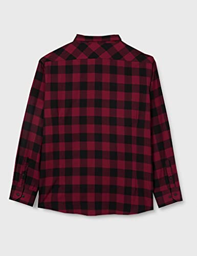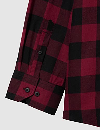 URBAN CLASSICS Camicia in Flanella a Maniche Lunghe da Uomo, Camicia Casual Lunga con Bottoni per Uomo, Vestibilità Regolare, Cotone Flanella, Colore: Nero/Bordeaux, Taglia: XXL