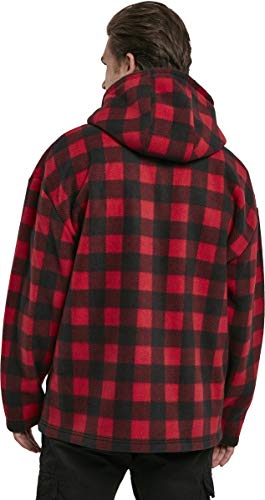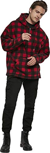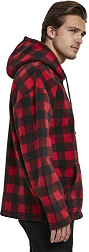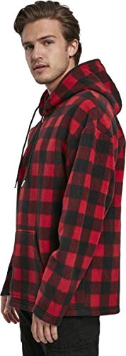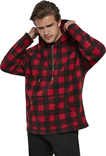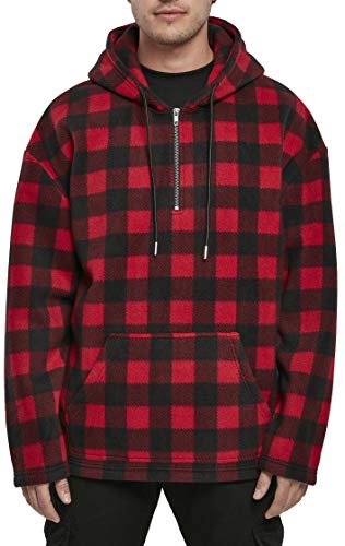 Urban Classics Felpa con Cappuccio in Pile con Mezza Zip, Redcheck, M Uomo