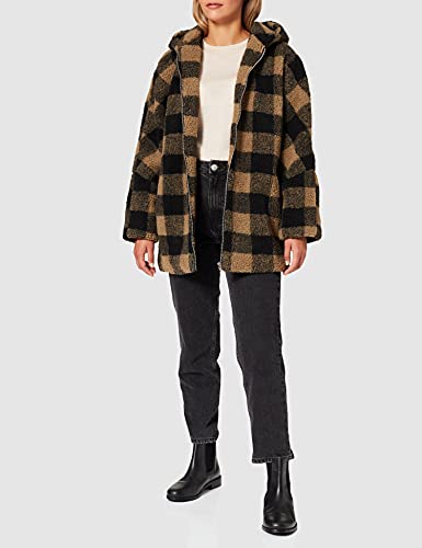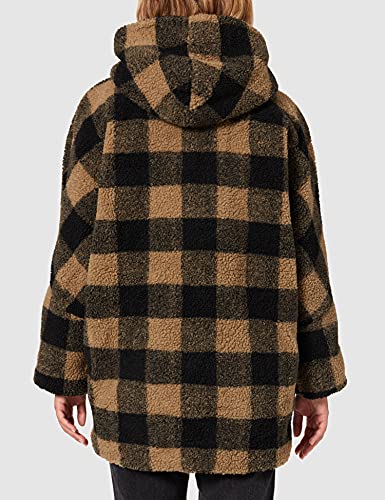 Urban Classics Giacca da Donna con Cappuccio, Oversize Check Sherpa, Tortora Morbida/Nero, S