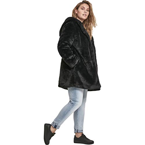 URBAN CLASSICS Giubbotto Donna Ecopelliccia con Cappuccio Extra Grande, Cappotto in Pile Corto, Tasche Laterali e Chiusura ad Occhiello, Taglie da XS a 5XL