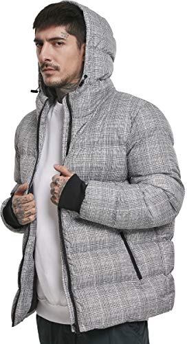 Urban Classics Hooded Check Puffer Jacket Giacca, Multicolore (White/Black 01248), Small Uomo