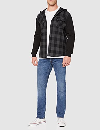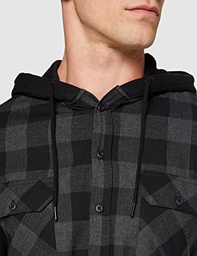 Urban Classics Hooded Checked Flanell Sweat Sleeve Shirt Camicia, Mehrfarbig (Blk/cha/bl 690), Medium Uomo