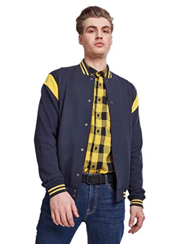 Urban Classics Inset College Sweat Jacket Felpa, Multicolore (Navy/Chrome Yellow 01242), S Uomo