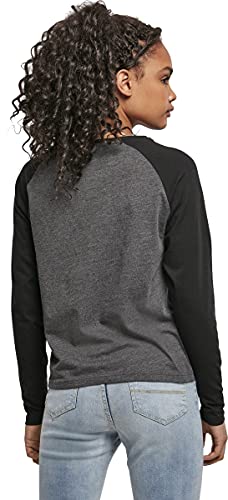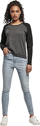 Urban Classics Ladies Contrast Raglan Longsleeve T-Shirt, Carbone/Nero, L Donna