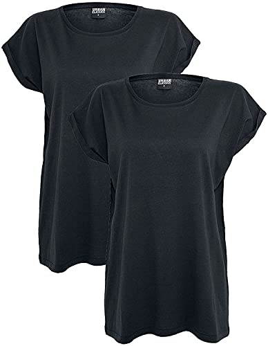 Urban Classics Ladies Extended Shoulder Tee 2 Pack, Maglietta Donna, Nero, XL