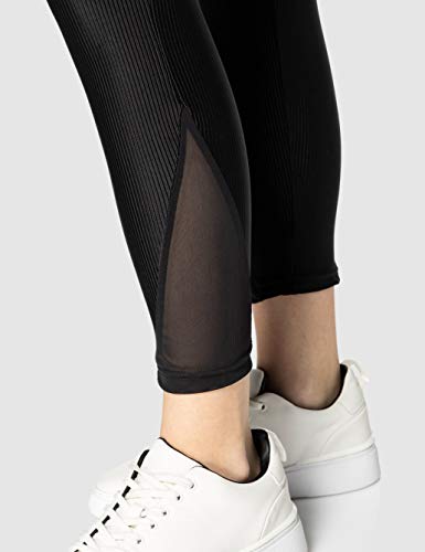 Urban Classics Ladies High Waist Shiny Rib Pedal Pusher Leggings, Nero, S Donna