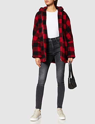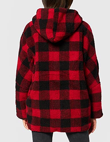 Urban Classics Ladies Hooded Oversized Check Sherpa Jacket Giacca, Multicolore (Firered/Blk 01440), XX-Large Donna
